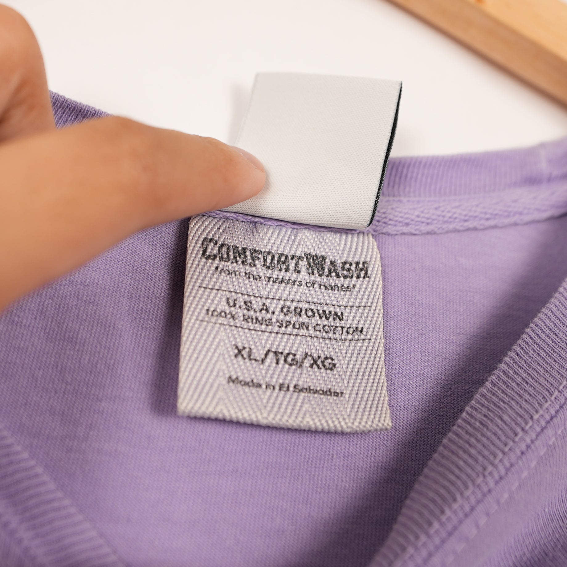 Details: Lavender purple with front and back graphics in pink, teal, and black.