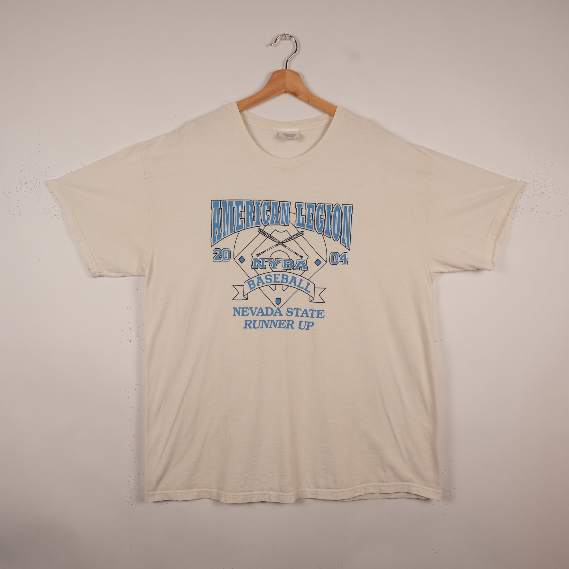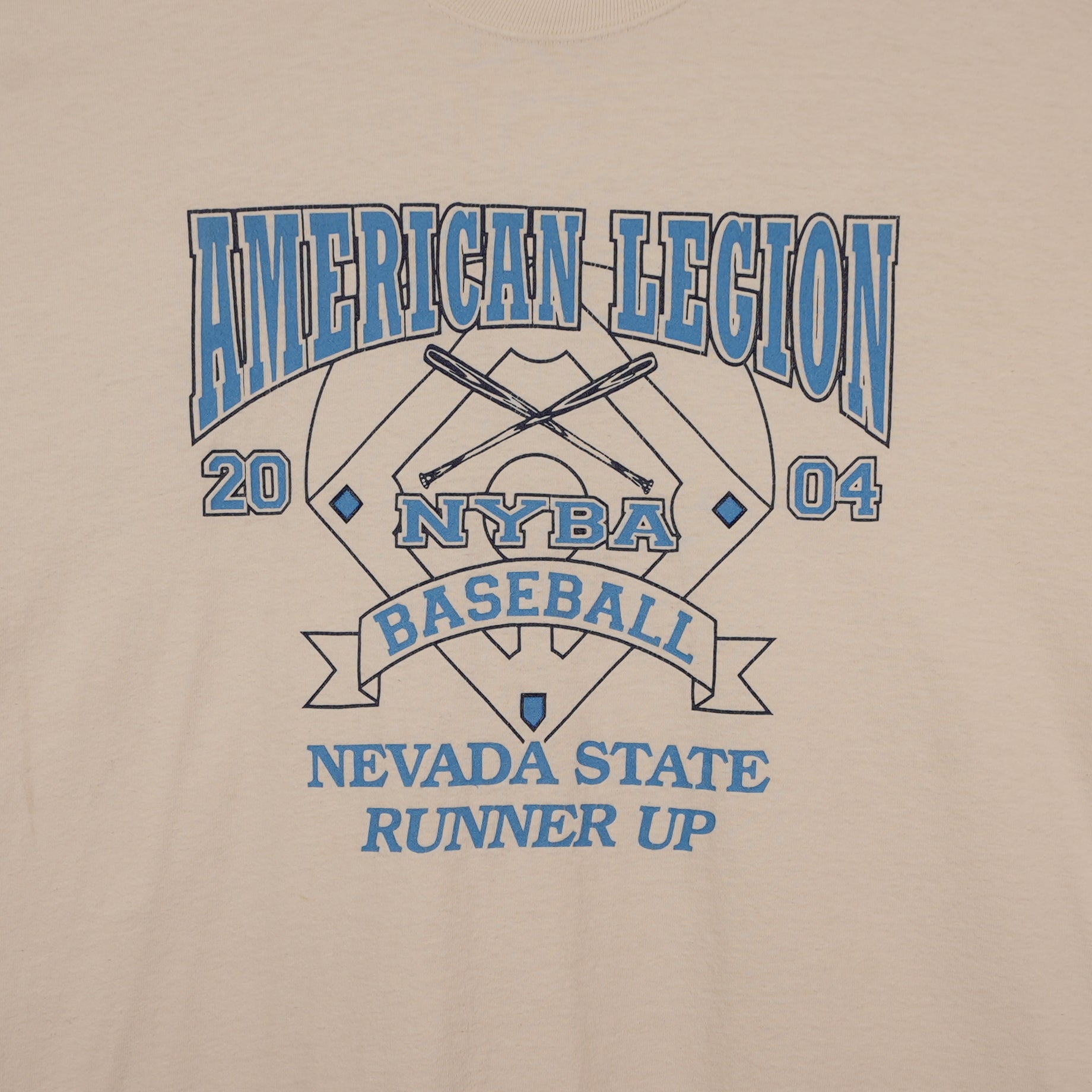 This one gives straight-up vintage energy — an American Legion Nevada State Runner-Up baseball tee from 2004, printed on a Hanes Heavyweight blank. Super clean and minimal design with that authentic old-school look that fits perfectly into a skate or workwear rotation.