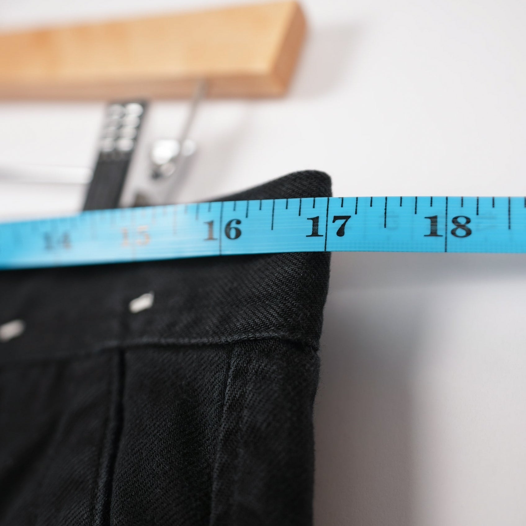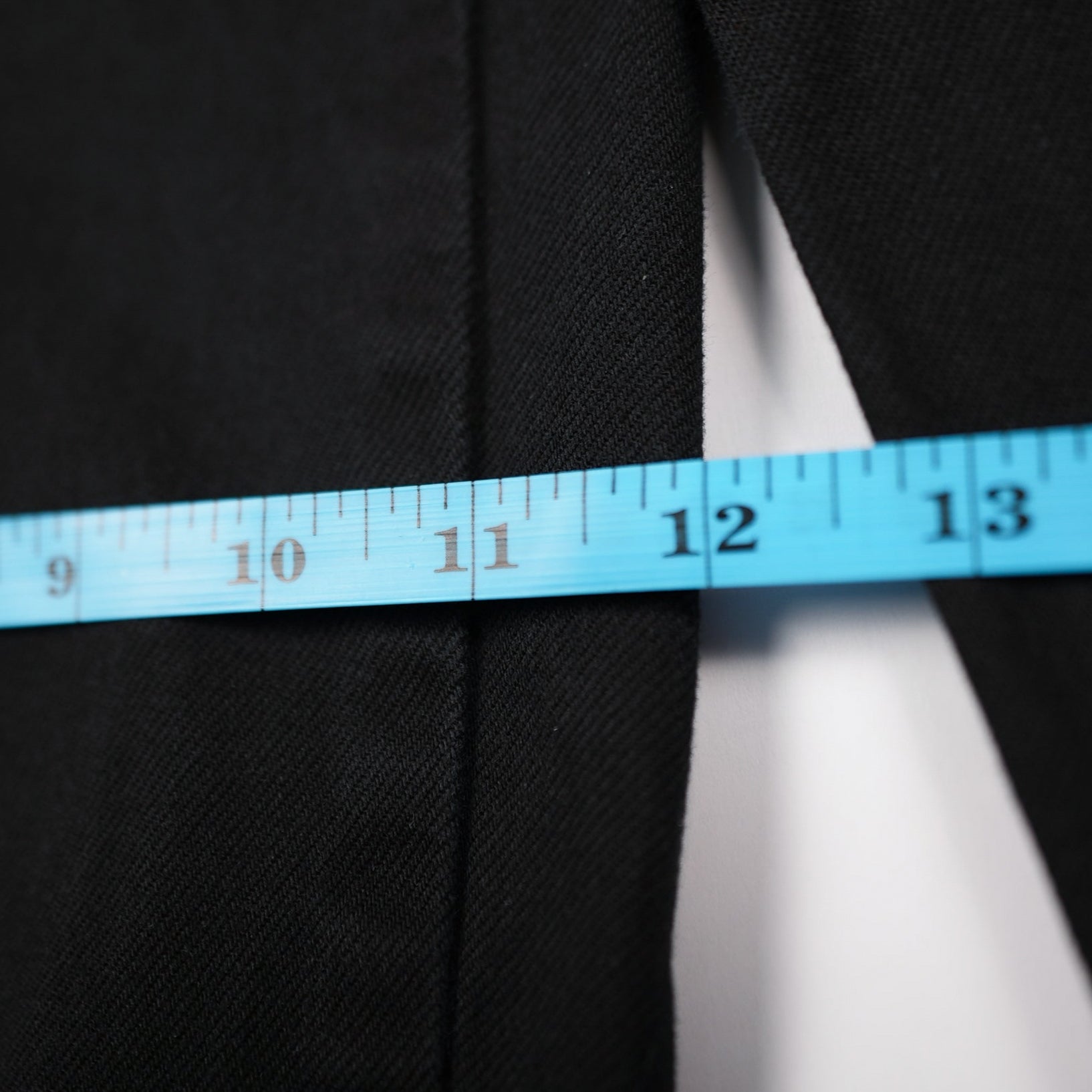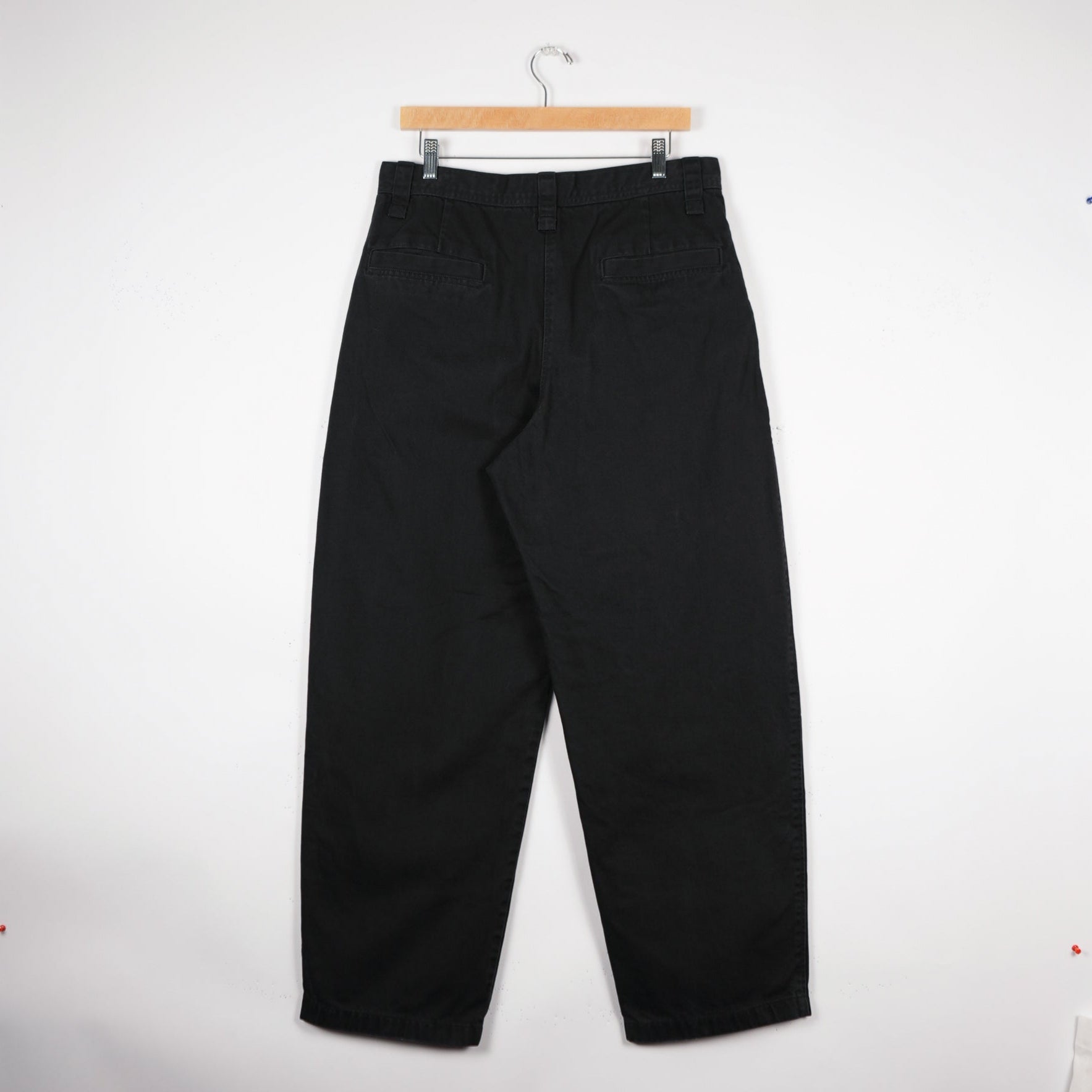 Details: Solid black chinos with a 32” waist, 30” inseam, approx. 12” leg opening. Minimalist design with no visible branding, welt back pockets, and belt loops.