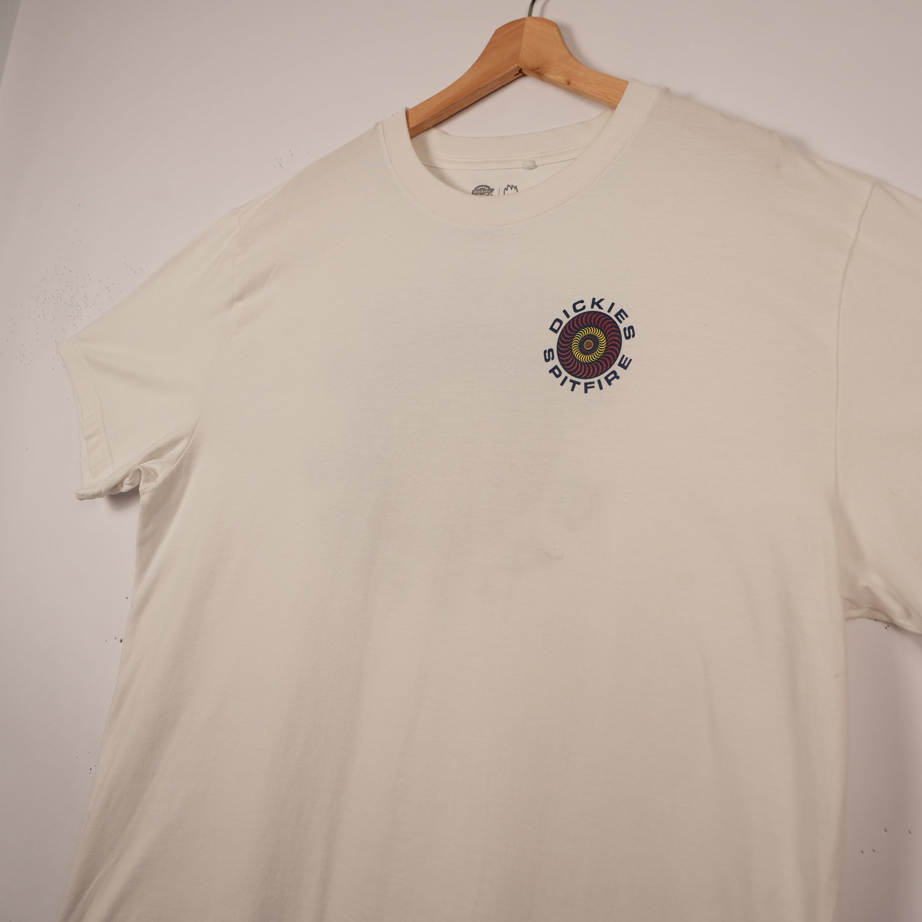 A true skateboarder’s essential, this tee is a collab between two legends — Dickies Skateboarding and Spitfire Wheels. The design features dual branding on both front and back, with the classic Spitfire swirl and bold typography that screams authentic skate culture.