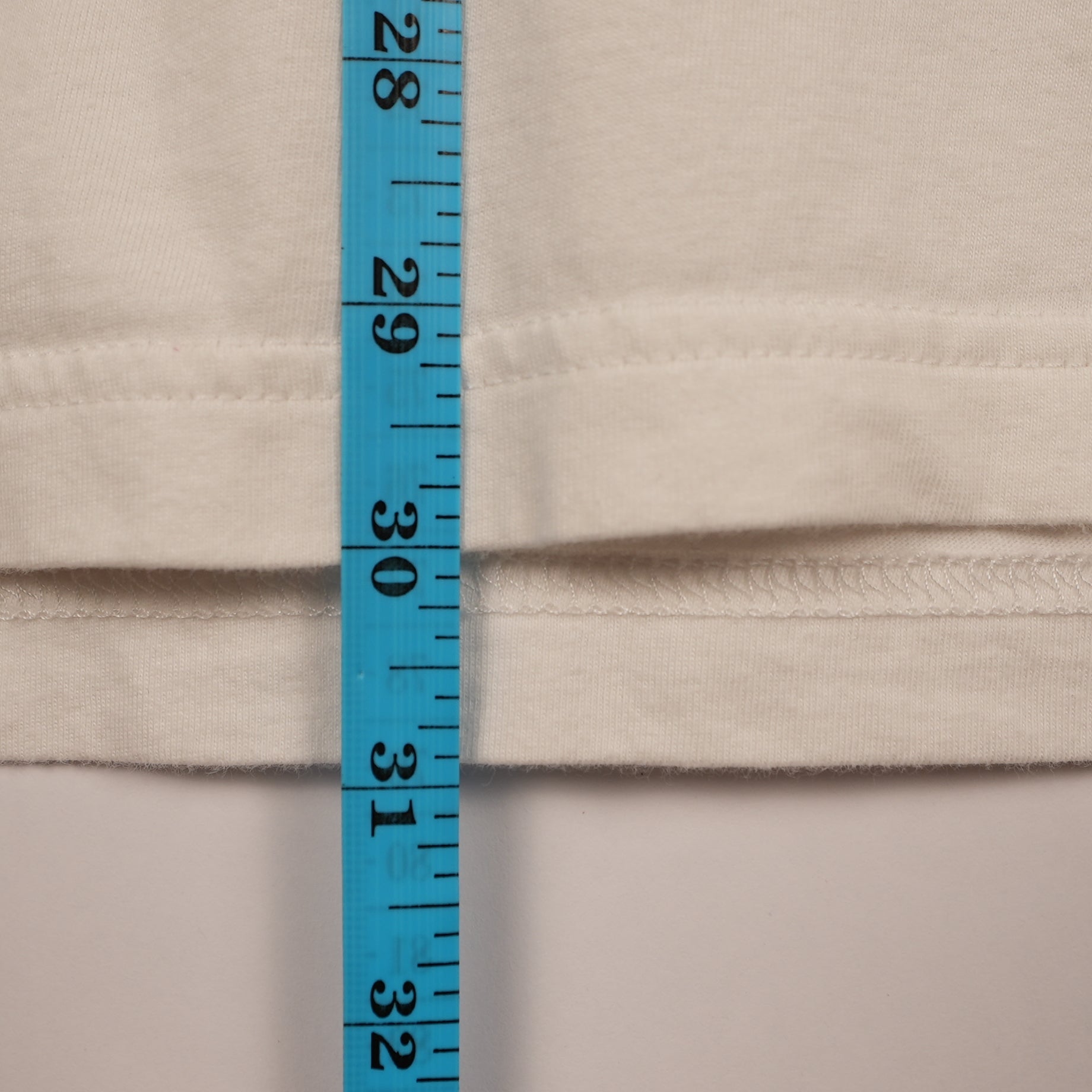 Details: White heavyweight cotton, front chest logo print, and large back graphic.