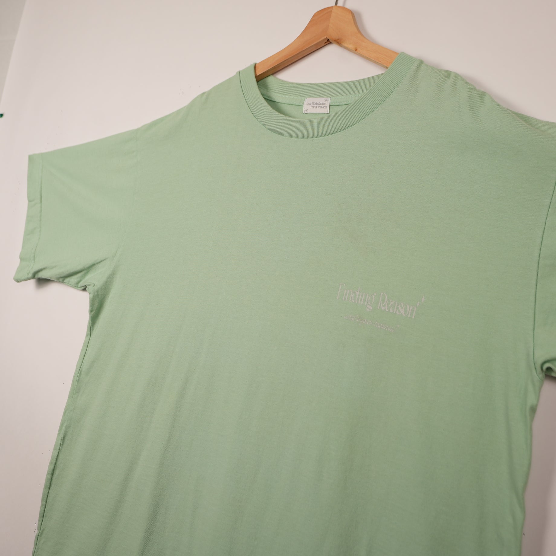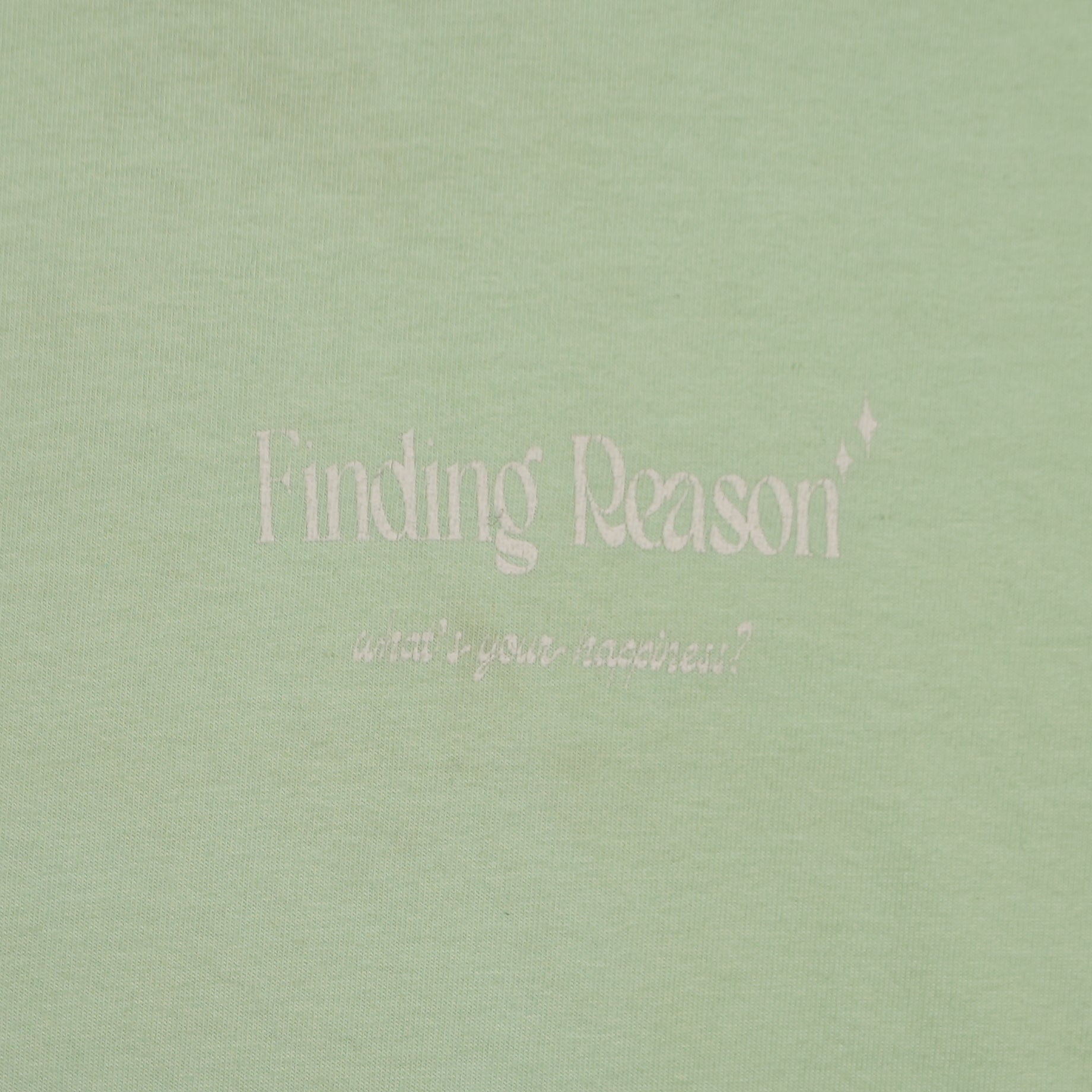 The mint green color and simple typography make it stand out while keeping things clean and minimal. It’s got a relaxed, oversized fit and that soft worn-in feel that Finding Reason tees are known for.