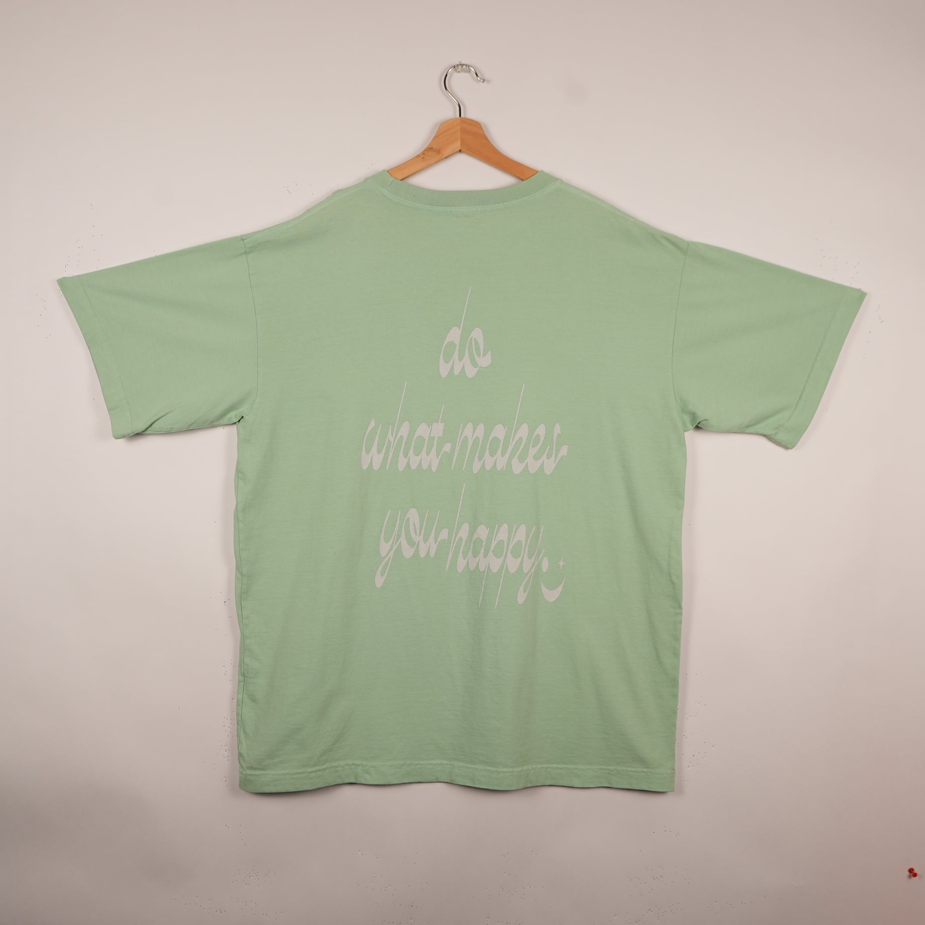 Details: Mint green color, small “Finding Reason” print on front, large “Do what makes you happy” text on back.