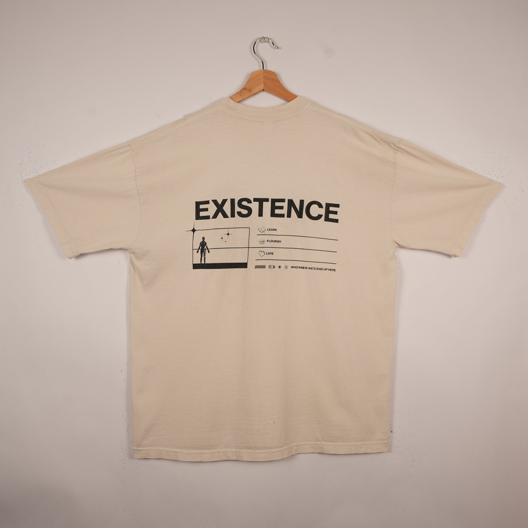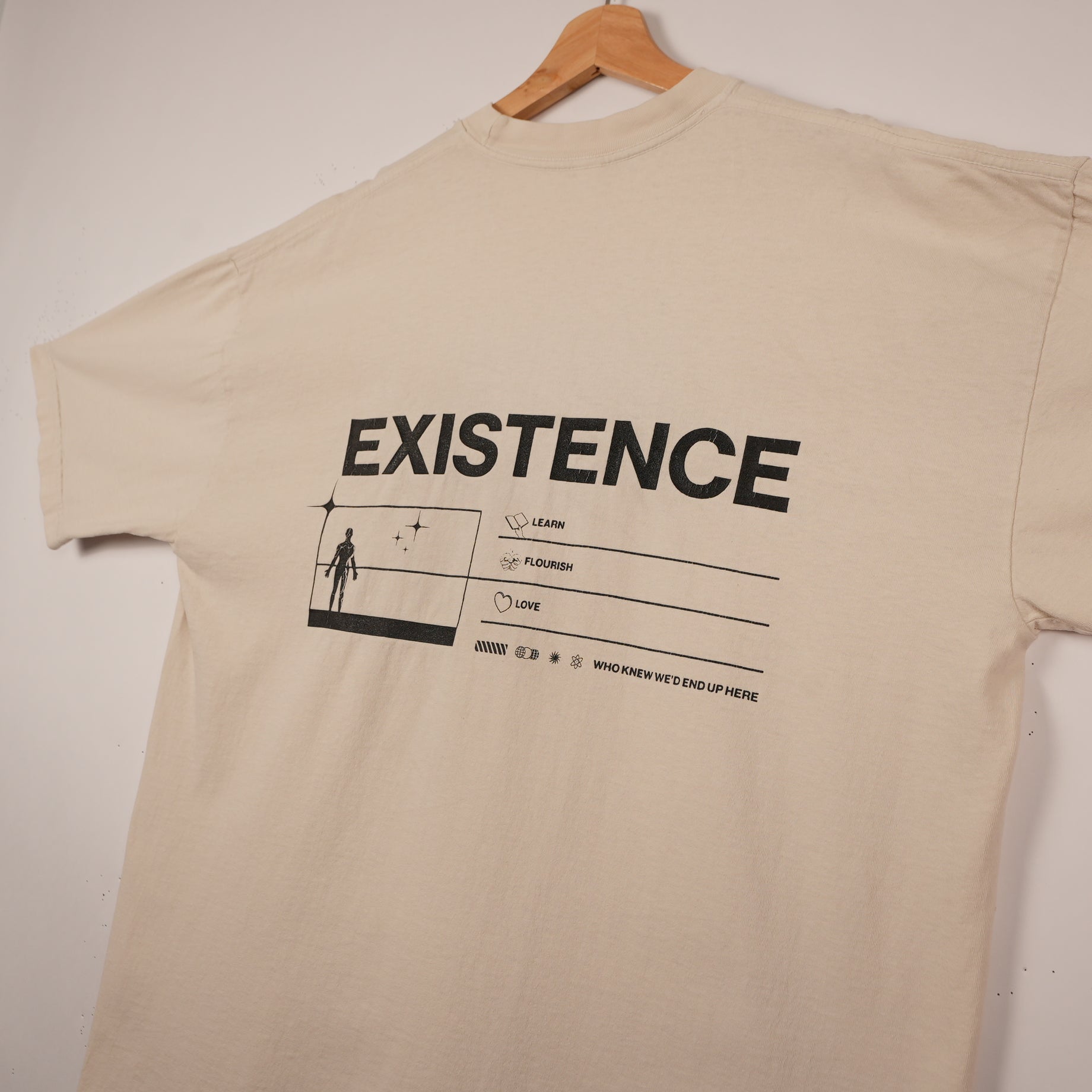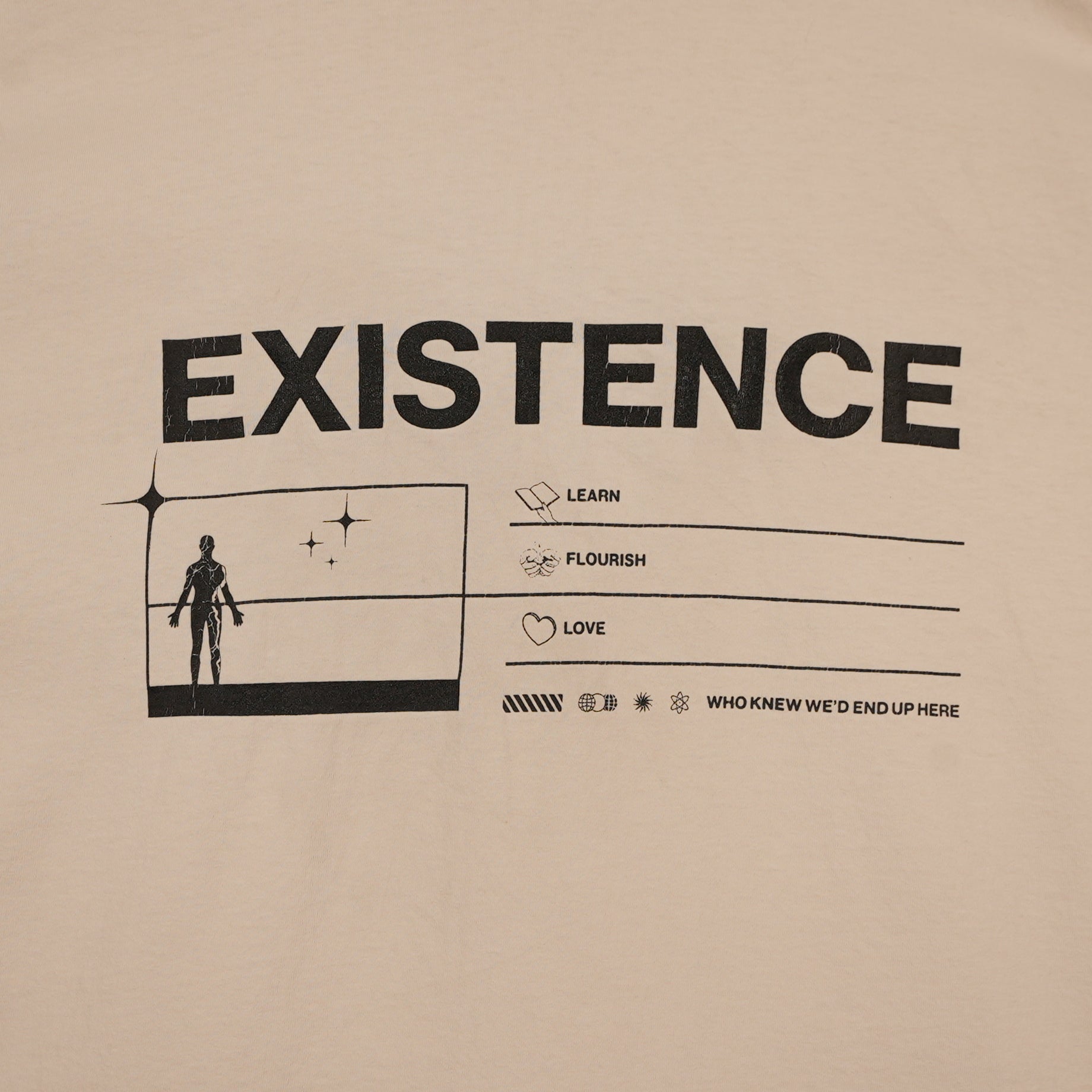 Details: Cream colorway, black Finding Reason front print, large Existence back graphic.