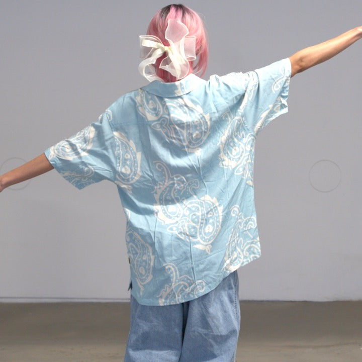 A clean and lightweight paisley button-up from GOLF featuring a soft blue base with white all-over print. Breathable and easy to wear, this piece has that laid-back summer energy that GOLF is known for.