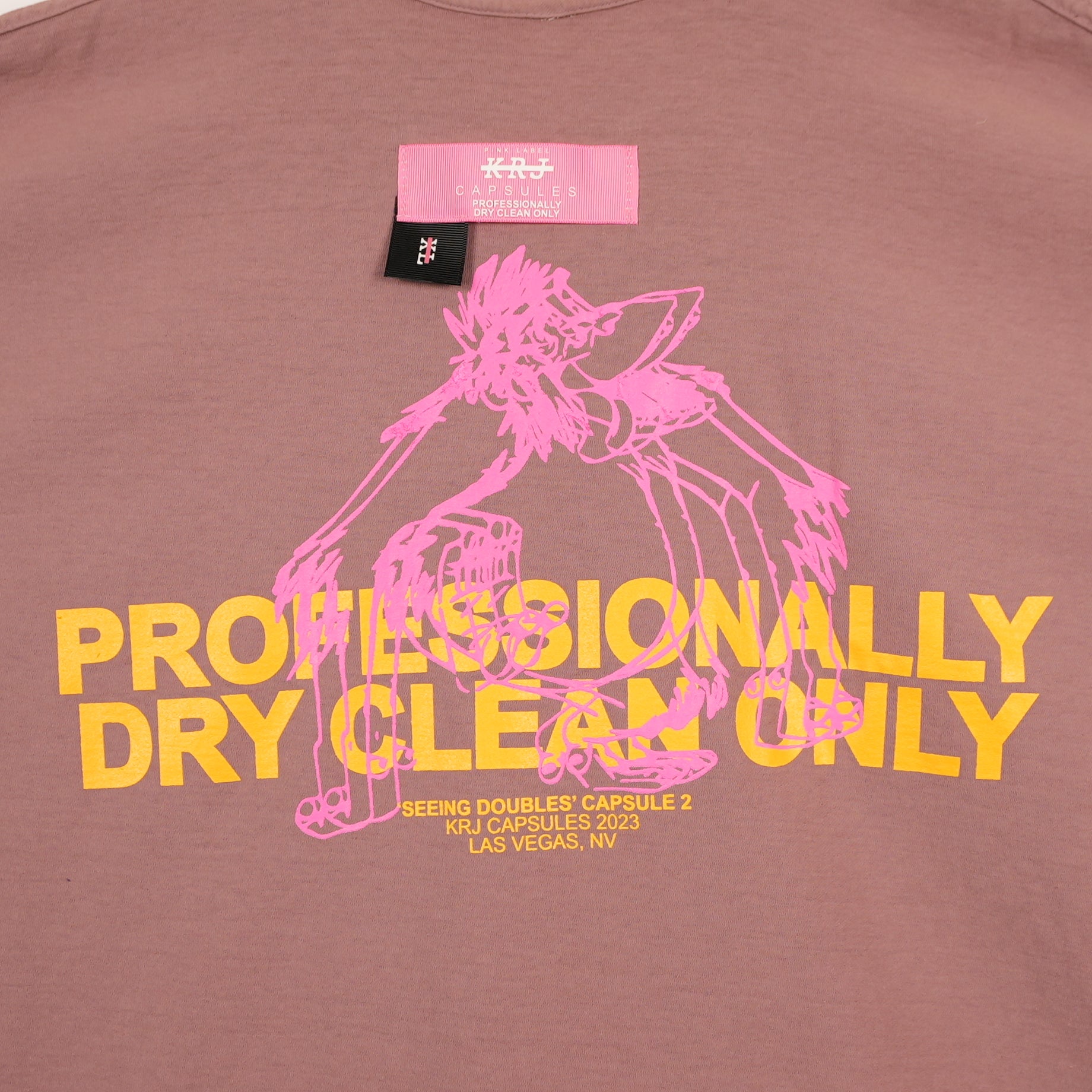 This shirt was designed by my friend KRJ, who created one of the most creative concepts I’ve seen — a tee that’s printed inside out. The “Professionally Dry Clean Only” branding on the back makes a bold statement, but the best part is: it doesn’t need to be dry cleaned at all. Featuring exposed seam details and a washed mauve color, this piece is a perfect balance of design and attitude. A real one-of-one type of energy.