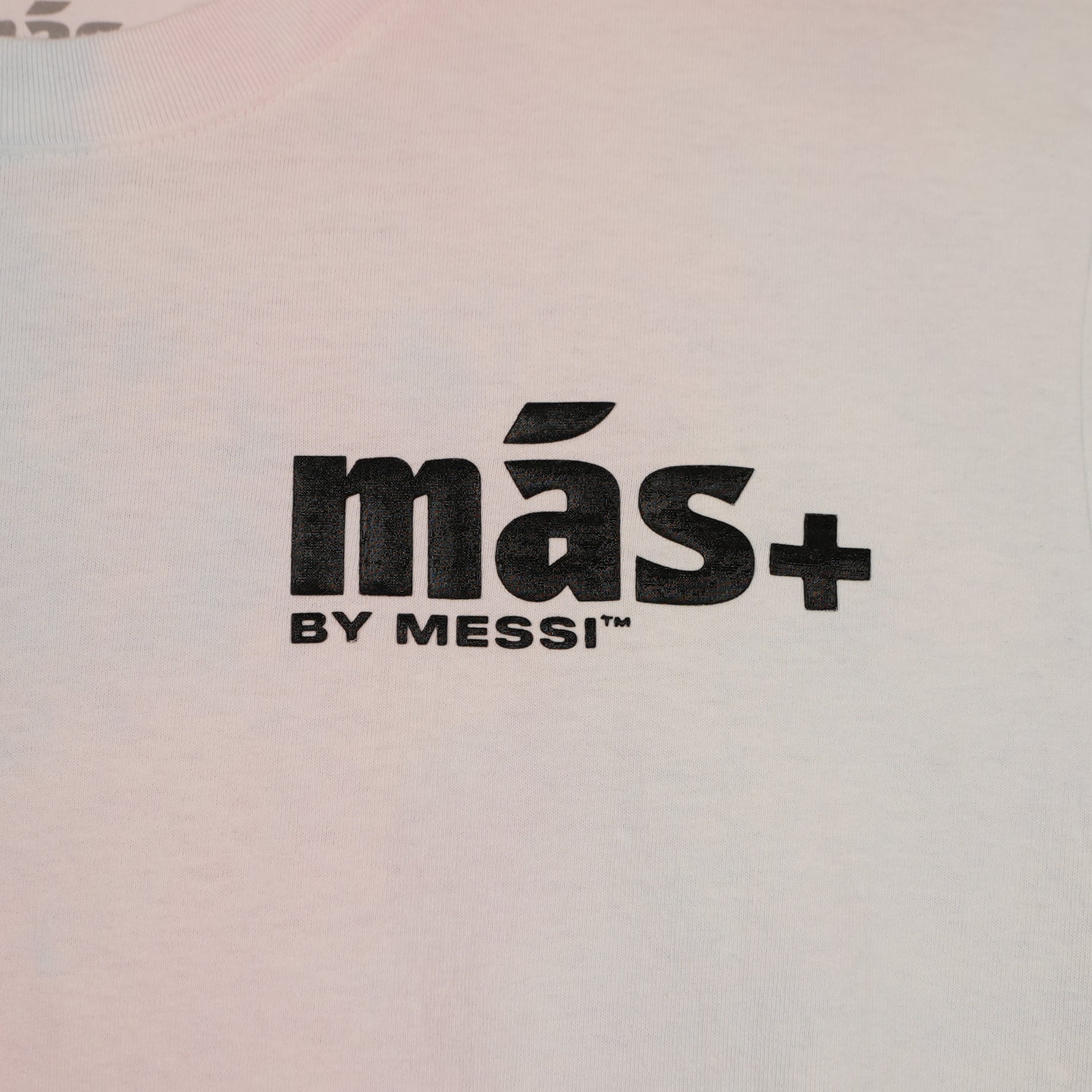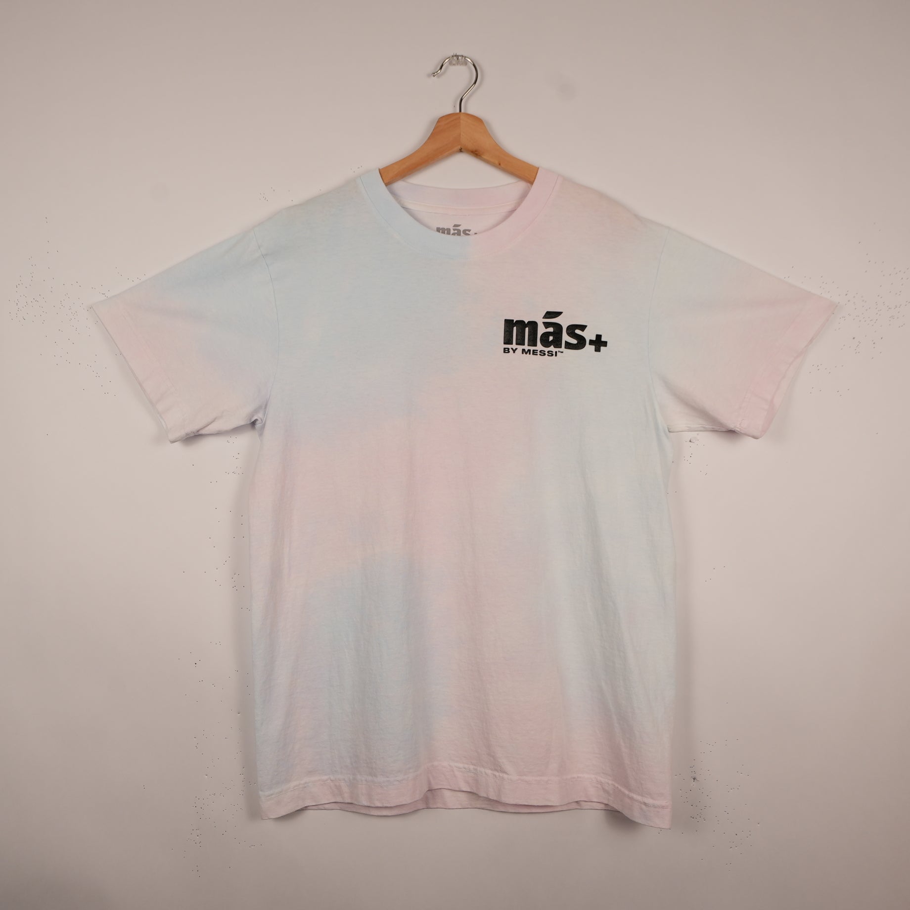 Details: Soft pastel tie-dye (pink/blue/white), small black “Más by Messi” logo.