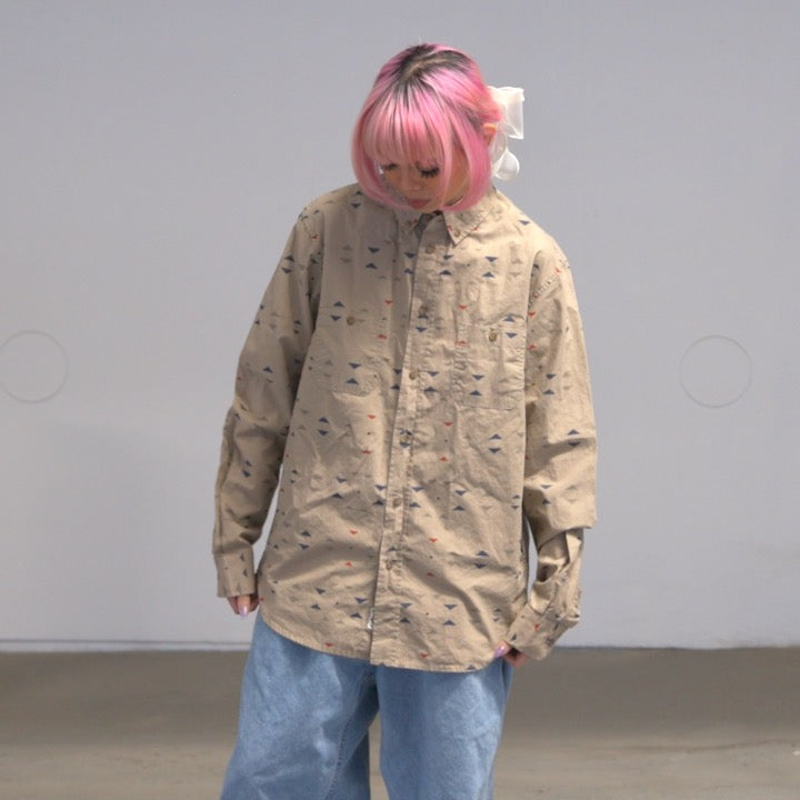 • Details: Neutral-toned button-up, subtle all-over tribal print, long sleeves, Wood Wood branding