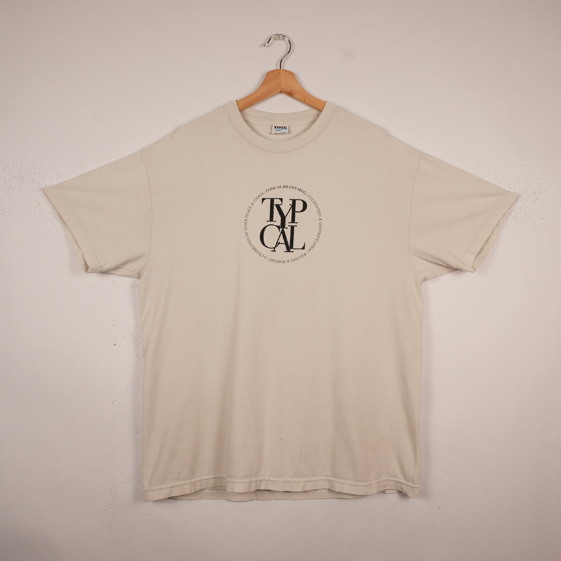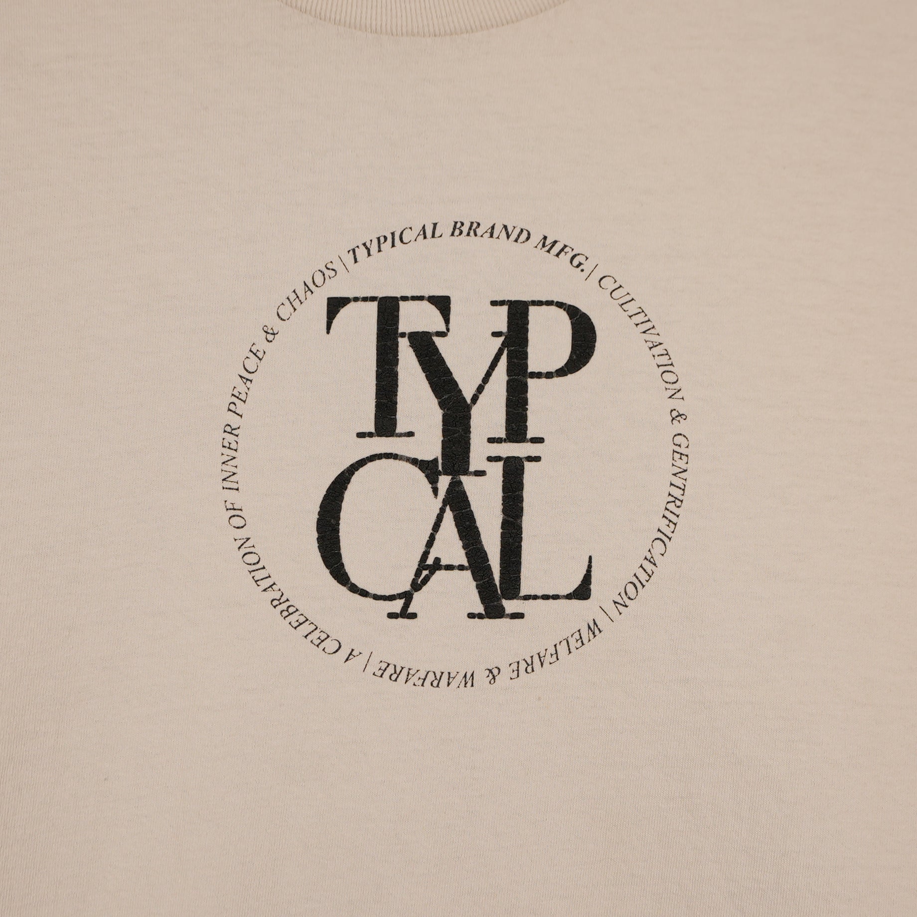 A timeless Typical Brand tee that's a staple in the minimalist streetwear look. The clean circular logo design gives it a simple but bold aesthetic, and the neutral beige tone makes it easy to style with anything — baggy pants, cargos, or denim.