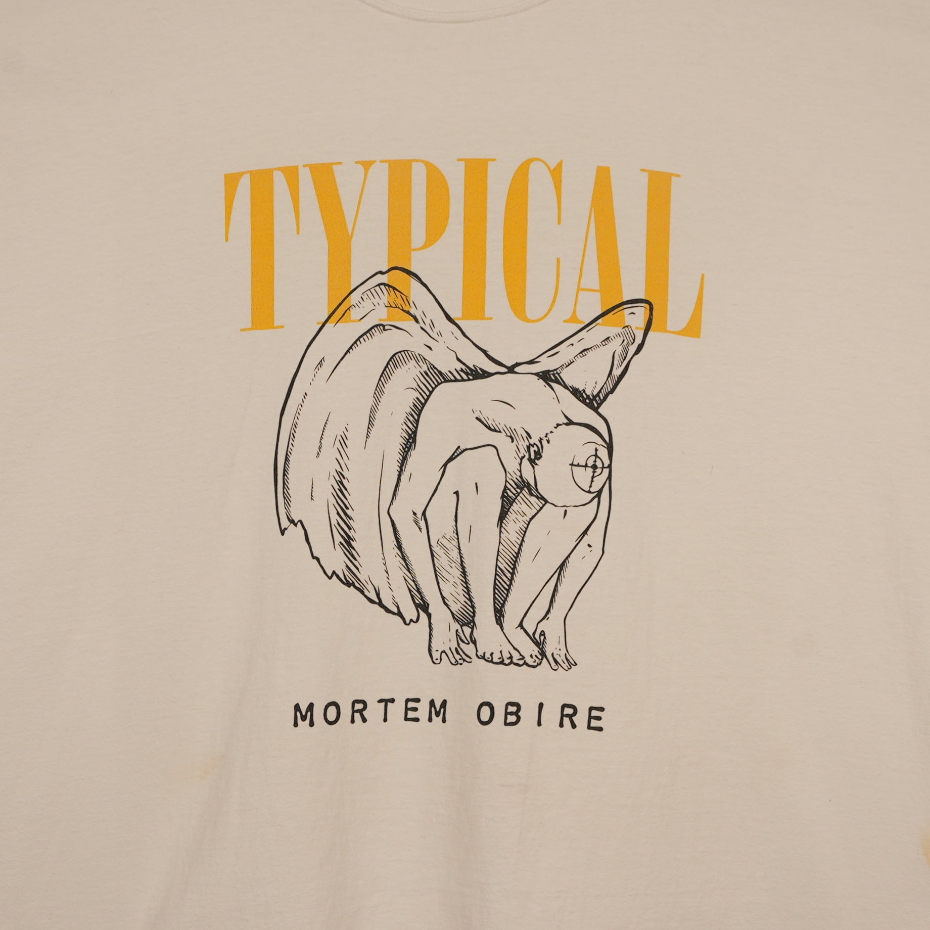 A clean and minimal piece from Typical Brand — flowy, oversized, and built with that authentic skatewear feel. The design features a bold yellow “TYPICAL” graphic with an artistic illustration and Latin text Mortem Obire, meaning “to face death,” giving it a deeper edge beneath its simple style.
