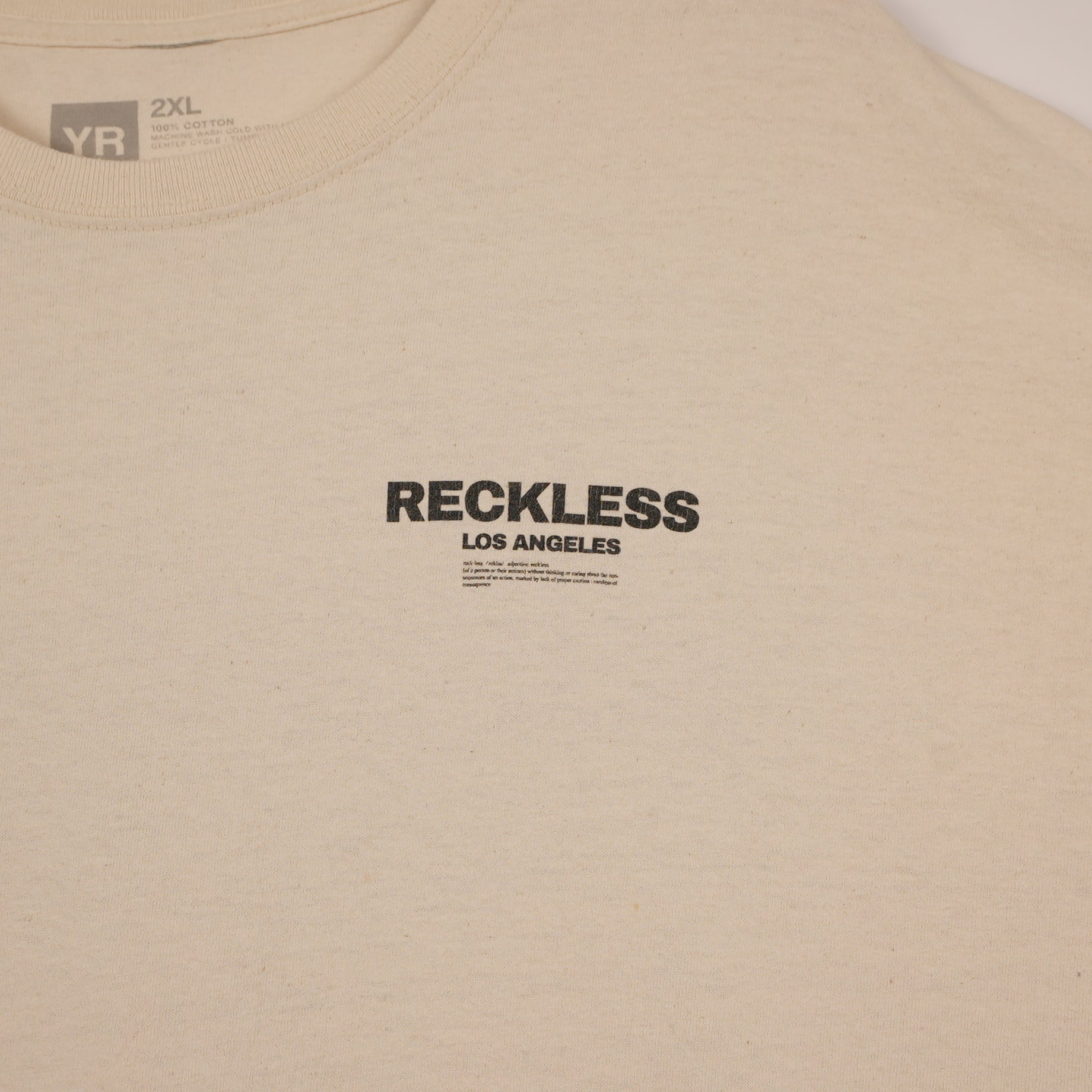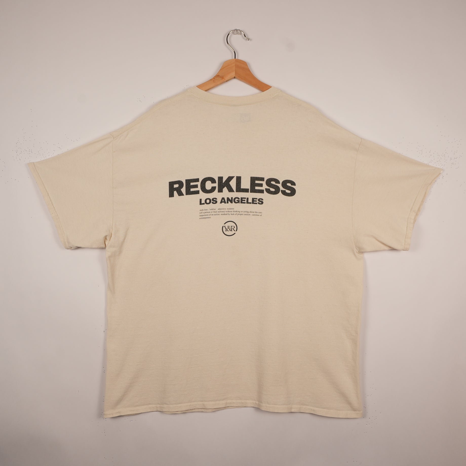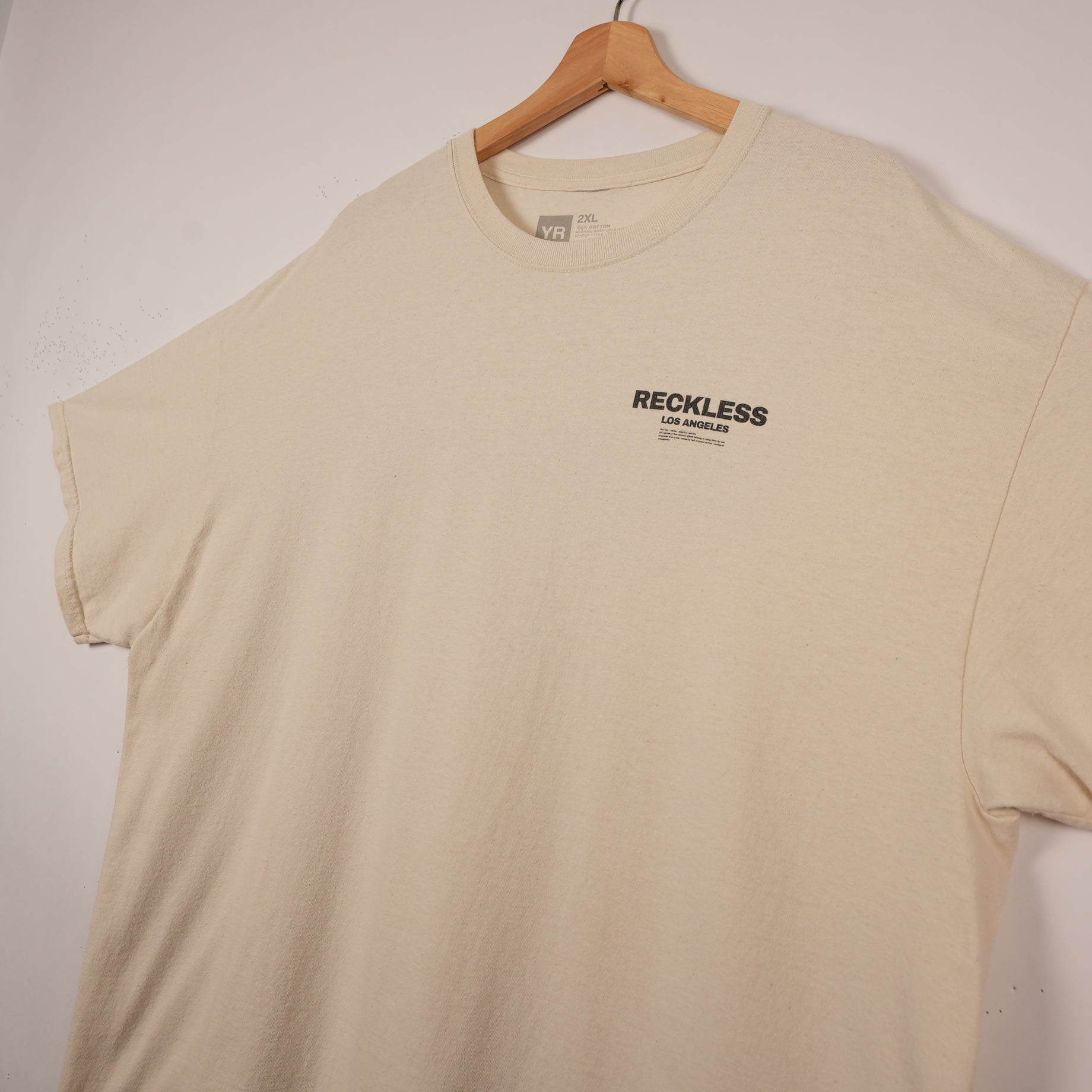Details: Cream/beige colorway with Reckless Los Angeles graphic on the back and small front logo print.